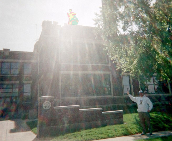 Here I am at perhaps the most sacred ground for true Pinocchio and FooT aficionados! Yes, I'm standing below the very room (second floor) at the now defunct Roosevelt Junior High School where legend has it that the first Pinocchio and FooT adventure was etched in history!